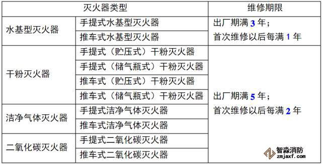 3.2 滅火器的維修期限應(yīng)符合5.4.3表的規(guī)定。