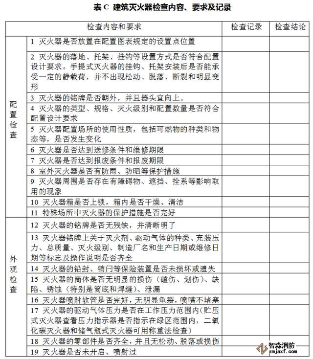 2.1 滅火器的配置、外觀等應(yīng)按附錄C的要求每月進行一次檢查。