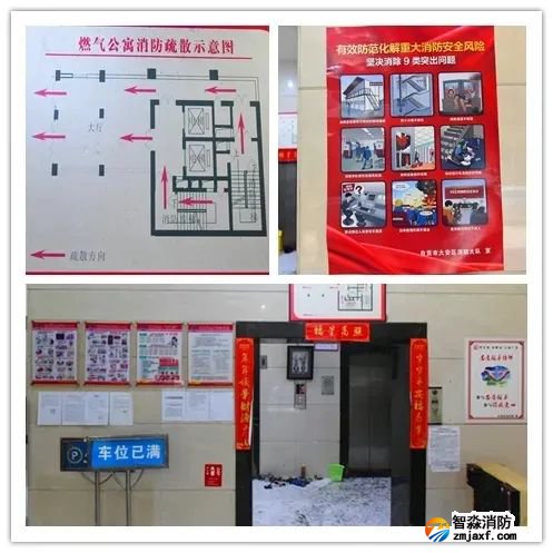 入戶大廳醒目位置均張貼有各類消防宣傳海報(bào)和圖片資料。