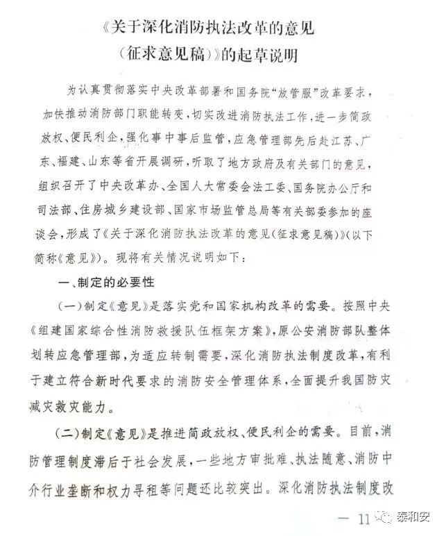 《關于深化消防執(zhí)法改革的意見(征求意見稿)》的兩頁紙引起行業(yè)極大關注!