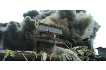 廢棄工廠突發(fā)火災(zāi)致兩名施工人員被困 消防緊急救援