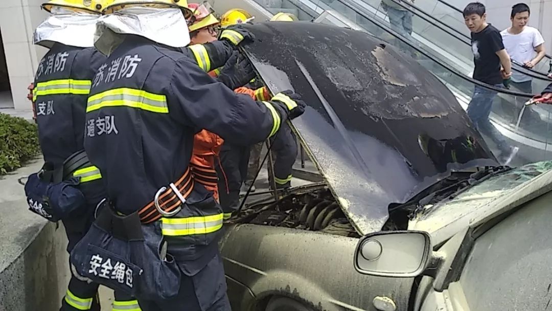 2019年5月14日11時02分,南通市海門119指揮中心接到報警稱:位于海門市中南世紀城格蕾絲酒店前面轎車自燃。北海路中隊2輛消防車、12名消防員立即趕赴現(xiàn)場處置。