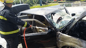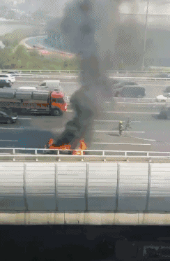 中隊指揮員立即下達任務,一名隊員配合維護好現(xiàn)場秩序,防止對旁邊的圍觀群眾造成傷害。為避免復燃及爆炸危險,滅火組隊員先將發(fā)動機蓋撬開,迅速出一支水槍對其進行冷卻降溫。在對事故車輛發(fā)動機與前輪胎煙霧進行壓制后,滅火組迅速轉(zhuǎn)戰(zhàn)駕駛室,對駕駛室內(nèi)起火點用水槍進行逐個擊破,4分鐘左右,全部起火點全部撲滅后,在確定無復燃可能性后,中隊指揮員將事故現(xiàn)場移交至警方。