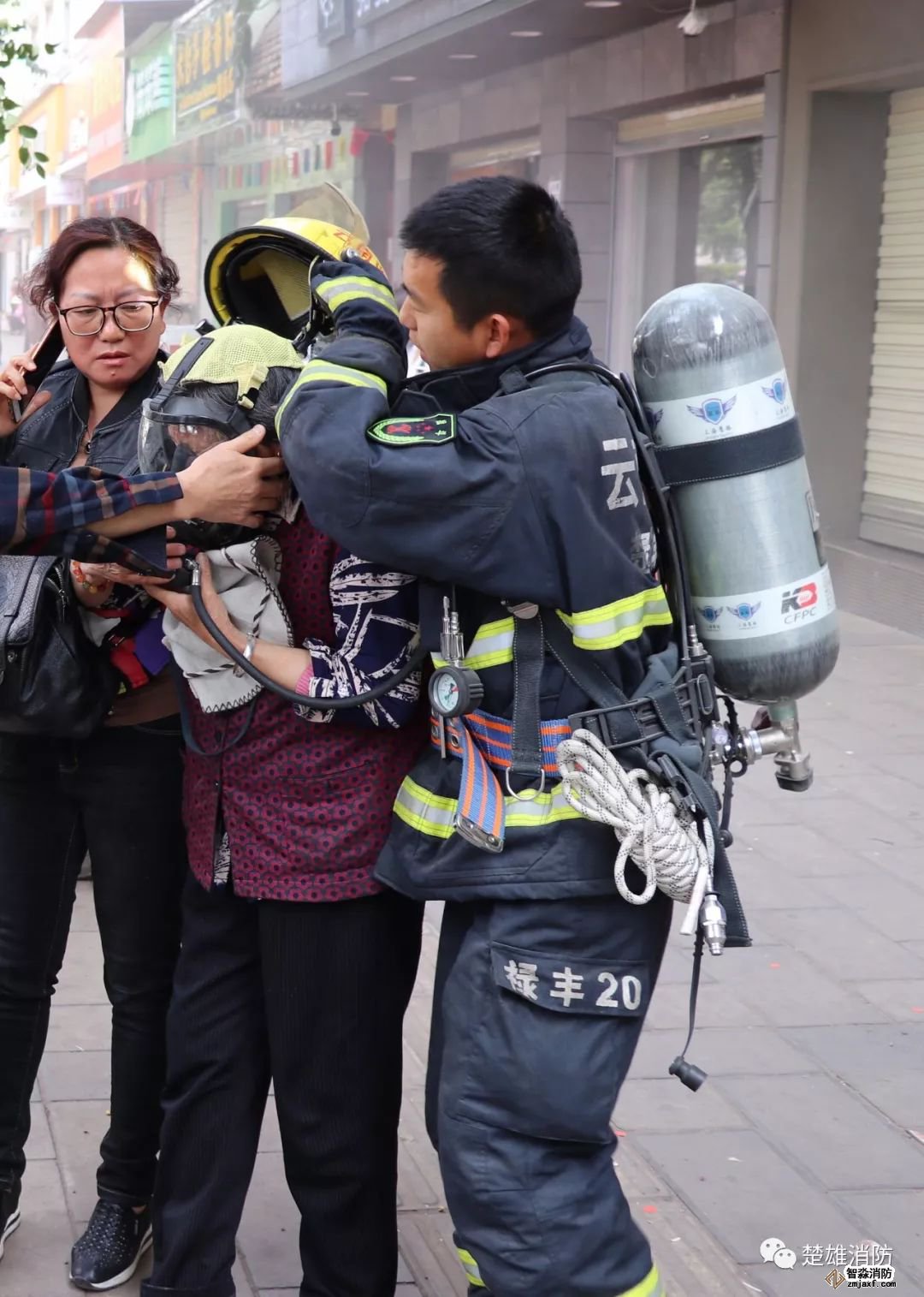 接救援過程中,由于被困群眾里有老年人,受到驚嚇后出現(xiàn)呼吸困難的癥狀,救援官兵見狀立刻取下自己的空呼面罩給老人佩戴,安撫老人情緒,保證老人意識清醒,并迅速將老人安全轉(zhuǎn)移。
