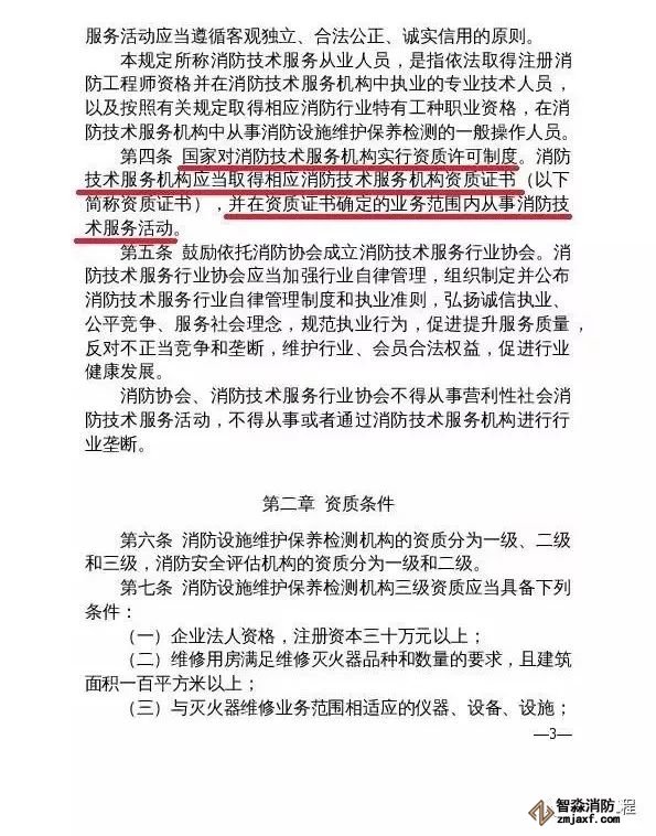 “ 取消消防設(shè)施維護(hù)保養(yǎng)檢測、消防安全評估機(jī)構(gòu)資質(zhì)許可制度,企業(yè)辦理營業(yè)執(zhí)照后即可開展經(jīng)營活動(dòng)。”這是征求意見稿非常重要的一條。