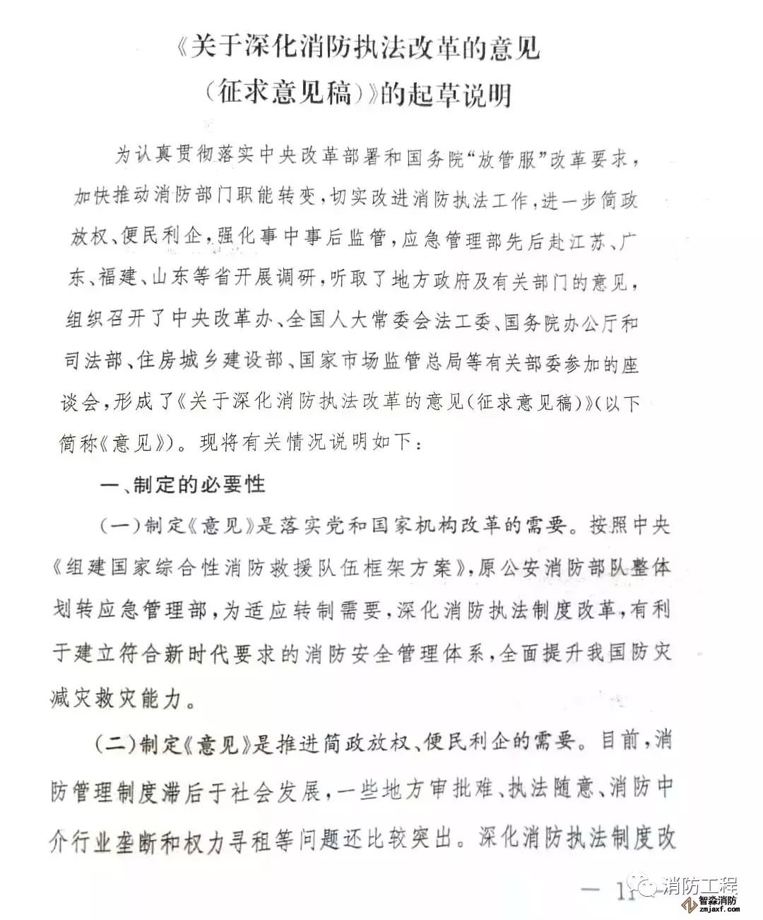 該征求意見稿提出“消防技術(shù)服務(wù)結(jié)論不再作為消防審批的前置條件”。消防審批不是已經(jīng)劃轉(zhuǎn)到住建部門了嗎,怎么應(yīng)急管理部提關(guān)于“消防審批”的事情。原來,參加部位座談會(huì)的有“中央改革辦......住房城鄉(xiāng)建設(shè)部......”。推測:可能在這個(gè)會(huì)上,征求了住房城鄉(xiāng)建設(shè)部關(guān)于工程建設(shè)的消防審批意見,住建部本著改革的要求,研究同意這個(gè)提法(做法)——“消防技術(shù)服務(wù)結(jié)論不再作為消防審批的前置條件”。