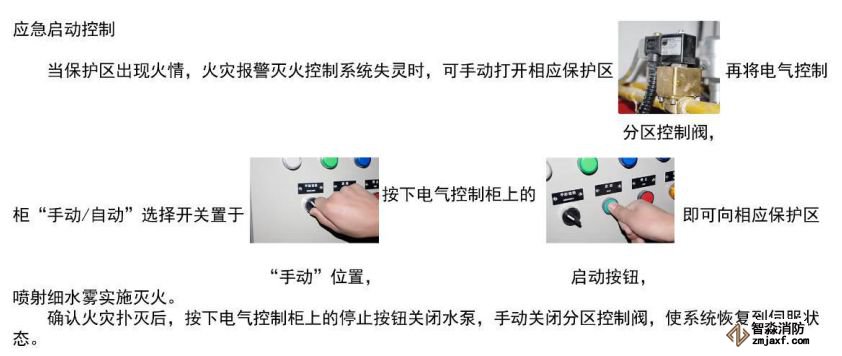 b)如為應(yīng)急啟動控制,按下電氣控制柜上的停止按鈕,手動關(guān)閉分區(qū)控制閥。
