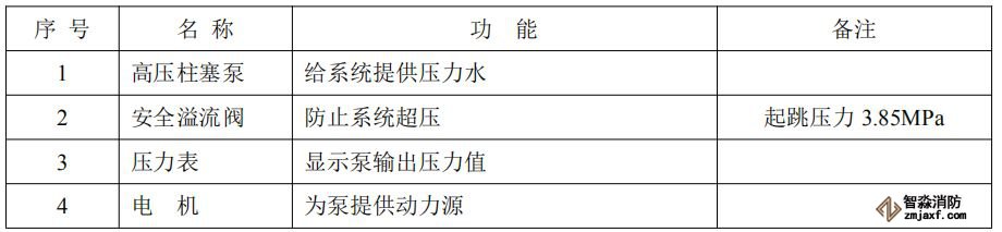 泵式細水霧自動滅火系統(tǒng)各主要部件名稱及其功能