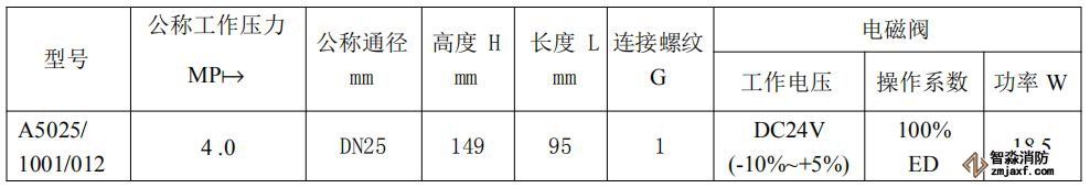 表1-10補水電磁閥主要技術(shù)參數(shù)