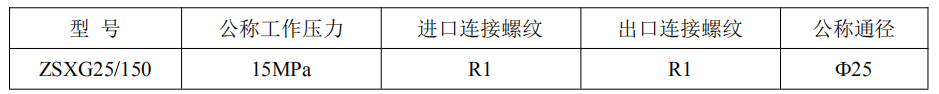 旁通閥主要技術(shù)參數(shù)