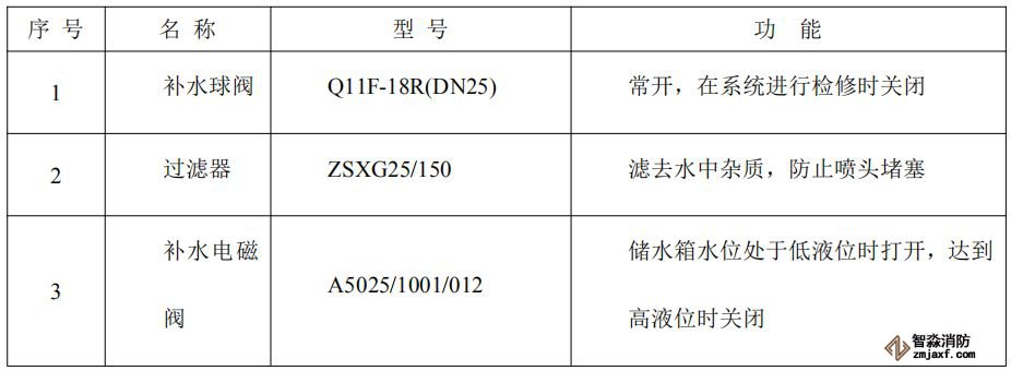 水箱自帶補水電磁閥、連桿浮球液位儀,補水電磁閥由電氣控制柜控制,通過它能自動保證水箱中的水位適中,不需要任何人為操作。當(dāng)水箱水位低于低液位時,連桿浮球液位儀輸出相關(guān)信號給電氣控制柜,由電氣控制柜給出DC24V開閥信號,補水電磁閥開啟,給水箱注水;當(dāng)補水到水箱水位高于高液位時,連桿浮球液位儀輸出相關(guān)信號給電氣控制柜,由電氣控制柜斷開DC24V開閥信號,補水電磁閥關(guān)閉,補水自動完成。