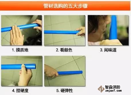 一用手感覺管材外表的的質(zhì)地是否光滑,看有無粗糙的雜質(zhì);二看各種管材的顏色是否與本來的顏色相符,有無變色掉色;三聞管材是否有異味怪味,尤其是PPR、PE、PVC管;四捏管材表面,看是否容易變形;五看管材是否容易砸碎,檢查其回彈性。