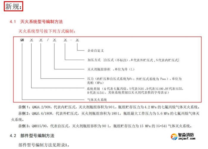 四、更改了“滅火系統(tǒng)型號編制方法”“部件型號編制方法”