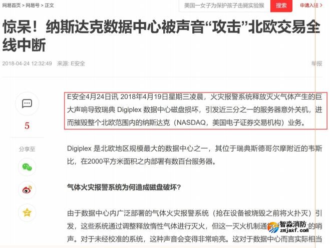 結(jié)論:本條是針對目前很多數(shù)據(jù)中心安裝氣體滅火系統(tǒng),經(jīng)過實(shí)驗(yàn)噴嘴噴放時的噪音達(dá)到100分貝以上時,會造成服務(wù)器磁盤震裂而造成重大損失,在2018年4月份曾因氣體滅火噴放的巨大噪音導(dǎo)致瑞典數(shù)據(jù)中心大量磁盤損壞,有三分之一的服務(wù)器關(guān)機(jī),進(jìn)而造成北歐納斯達(dá)克業(yè)務(wù)停擺。