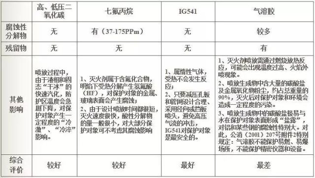 高、低壓二氧化碳、IG541、七氟丙烷、氣溶膠等氣體滅火系統(tǒng)基本上都具有不導(dǎo)電、腐蝕性小、無(wú)浸漬、滅火后不留痕跡的特點(diǎn),總體來(lái)說(shuō)對(duì)大多數(shù)保護(hù)對(duì)象,包括電器設(shè)備、儀器儀表、圖書(shū)檔案等都是安全的。