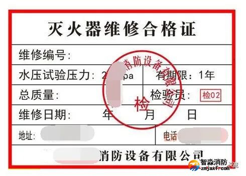 維修合格證應(yīng)采用不加熱的方法固定在滅火器的氣瓶(筒體)上,但不應(yīng)覆蓋原滅火器上的銘牌標志。將其從滅火器的氣瓶(筒體)上去除時,應(yīng)自行破損。